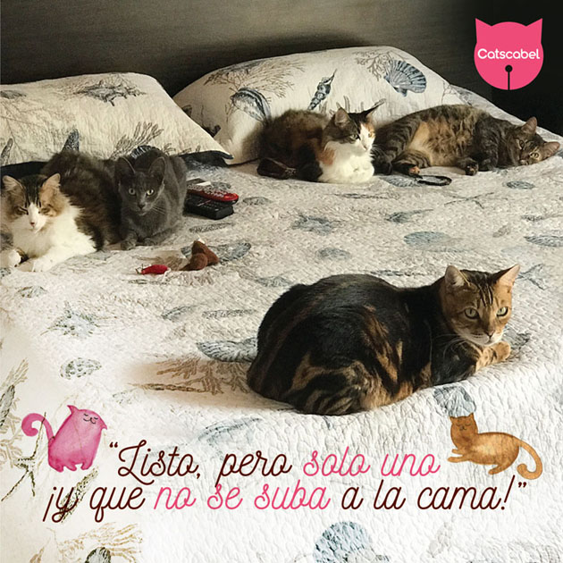 Y fue así que sucedió con Verónica, una vez que tuvo a Orión (el bengalí líder de adelante) no pudo detenerse. Además cabe aclarar que aquí solo hay 5 pero en realidad son 10… y bueno, mientras más te resistas y adviertas que “a tu cama no se subirán” más rápidamente te verás totalmente destronado, con dolor de cuello, espalda y hasta el dedo meñique del pie de solo pensar en moverte e incomodarlos. Mejor olvídalo, ¡pelear por tu cama, es caso perdido!