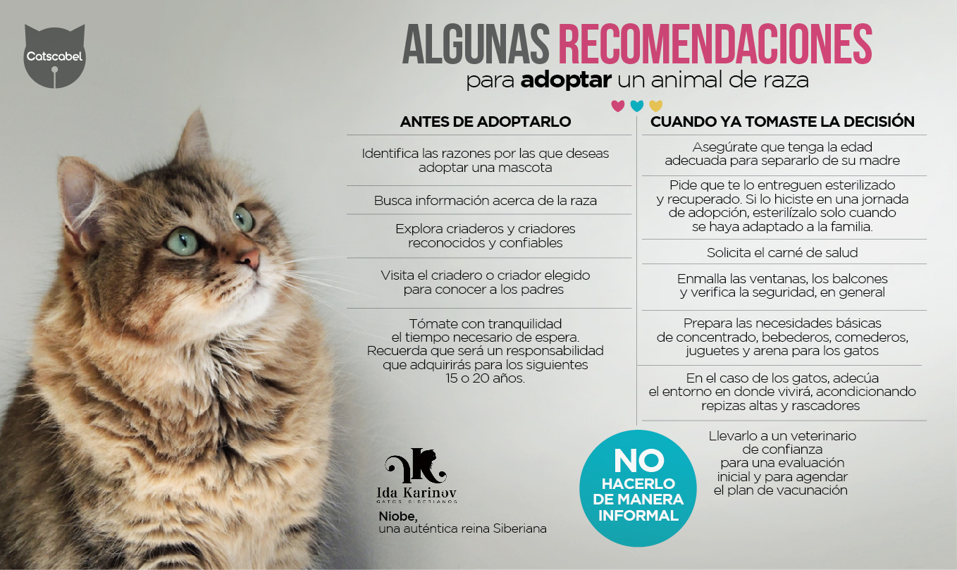 Y por último, si ya está decidido, tomarse con tranquilidad el tiempo necesario de espera. Lo más probable es que un gatito de raza no esté listo para llevar a casa cuando se presenta el antojo. Suele haber una larga lista de espera que pondrá a prueba la tenacidad de su decisión. De paso puede ser muy provechoso para reflexionar sobre los detalles que suponen pasar del deseo a la realidad. Tener en cuenta todos los aspectos de cuidado, mantenimiento, atención y seguridad que debe ofrecerle a su mascota durante toda la vida, que será entre 15 y 20 años.